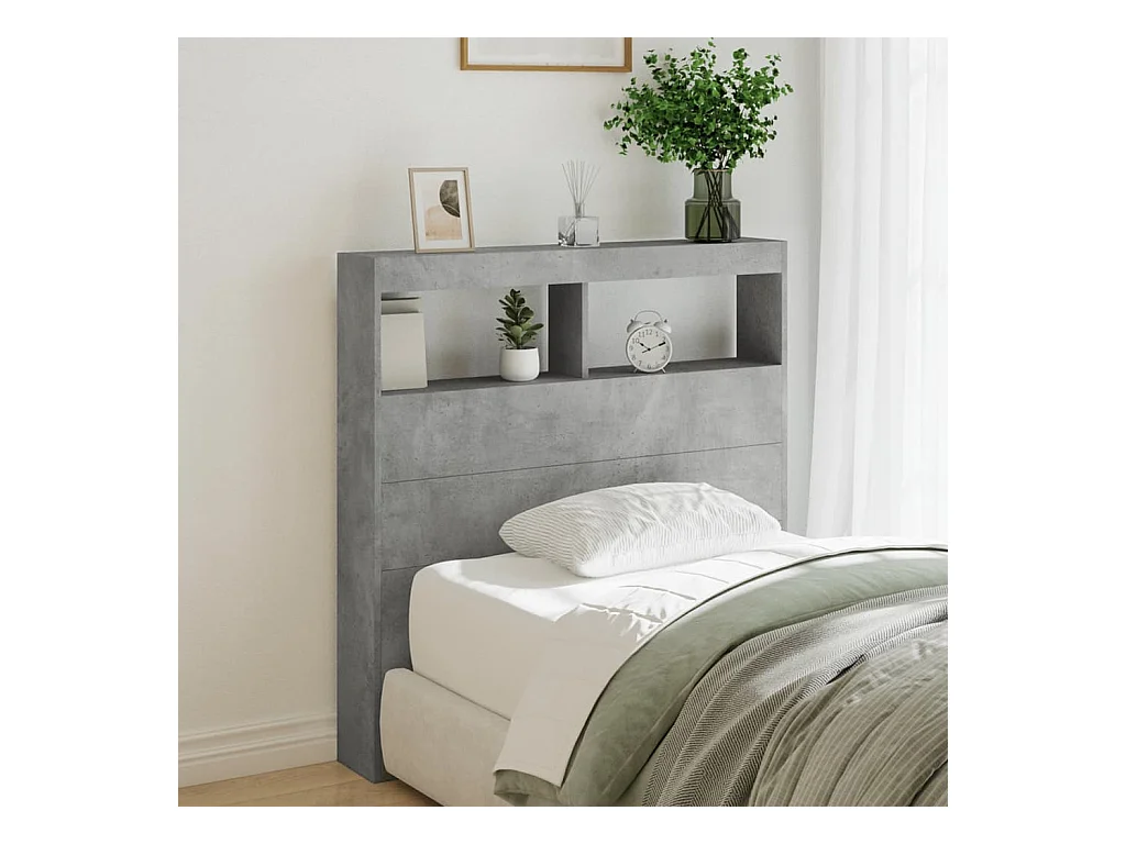 Cabecero de cama con luz LED gris hormigón 100x17x102 cm ES685045