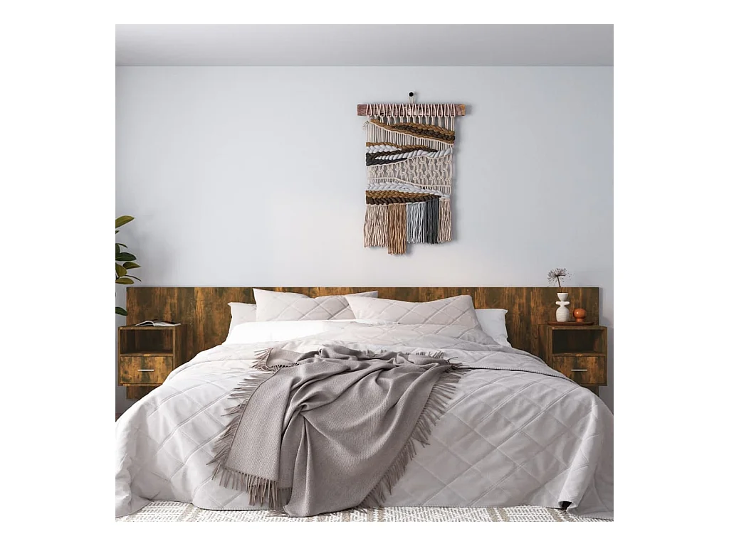 Cabecero de cama y mesitas madera contrachapada roble ahumado ES51708