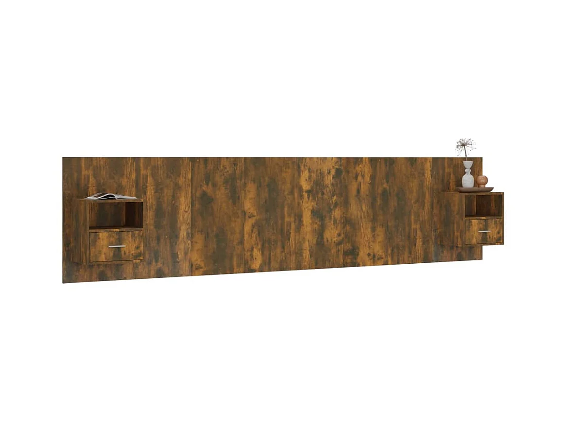 Cabecero de cama con mesitas madera contrachapada roble ahumado ES25880