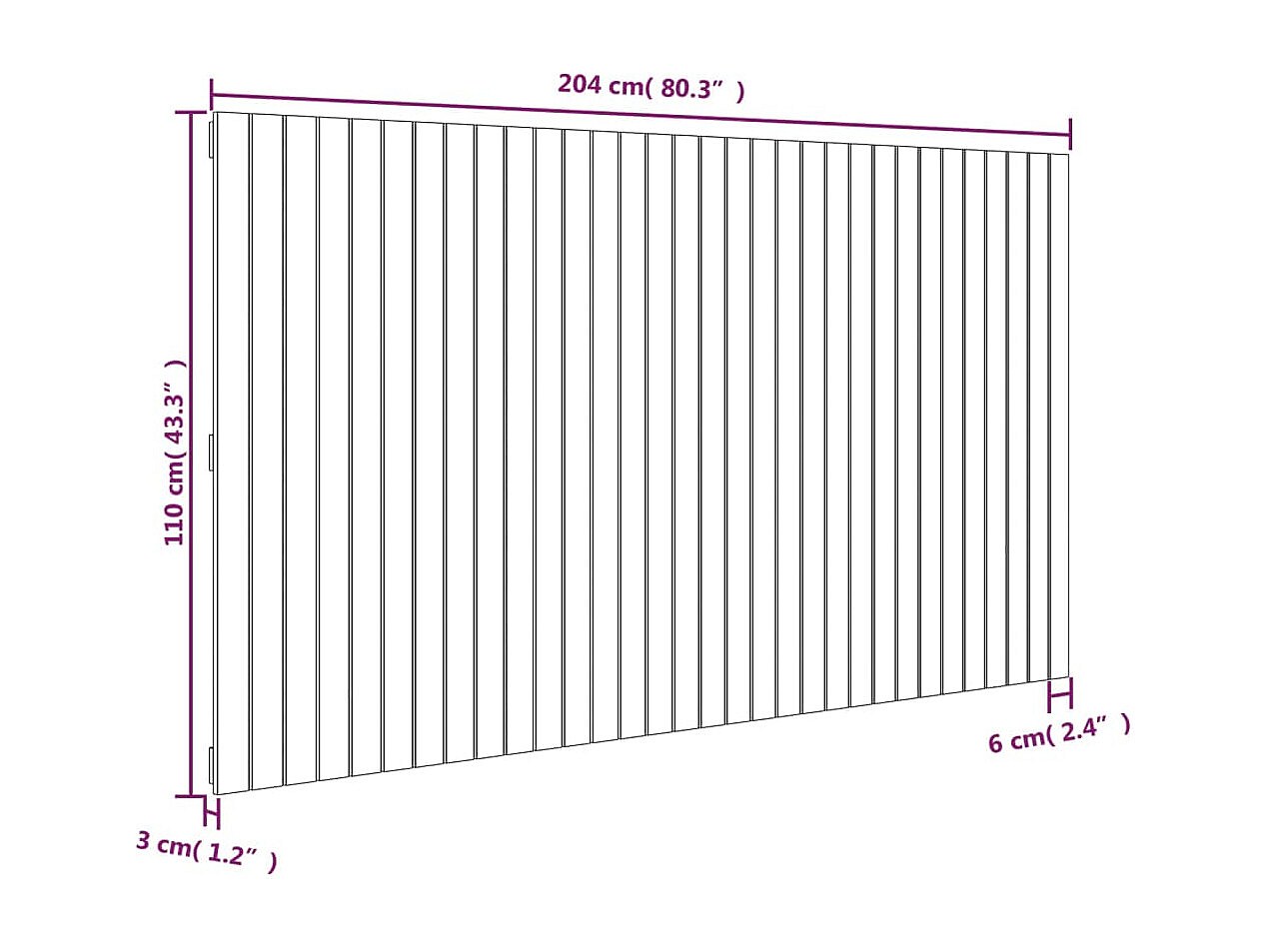 Cabecero de cama de pared madera maciza de pino 204x3x110 cm