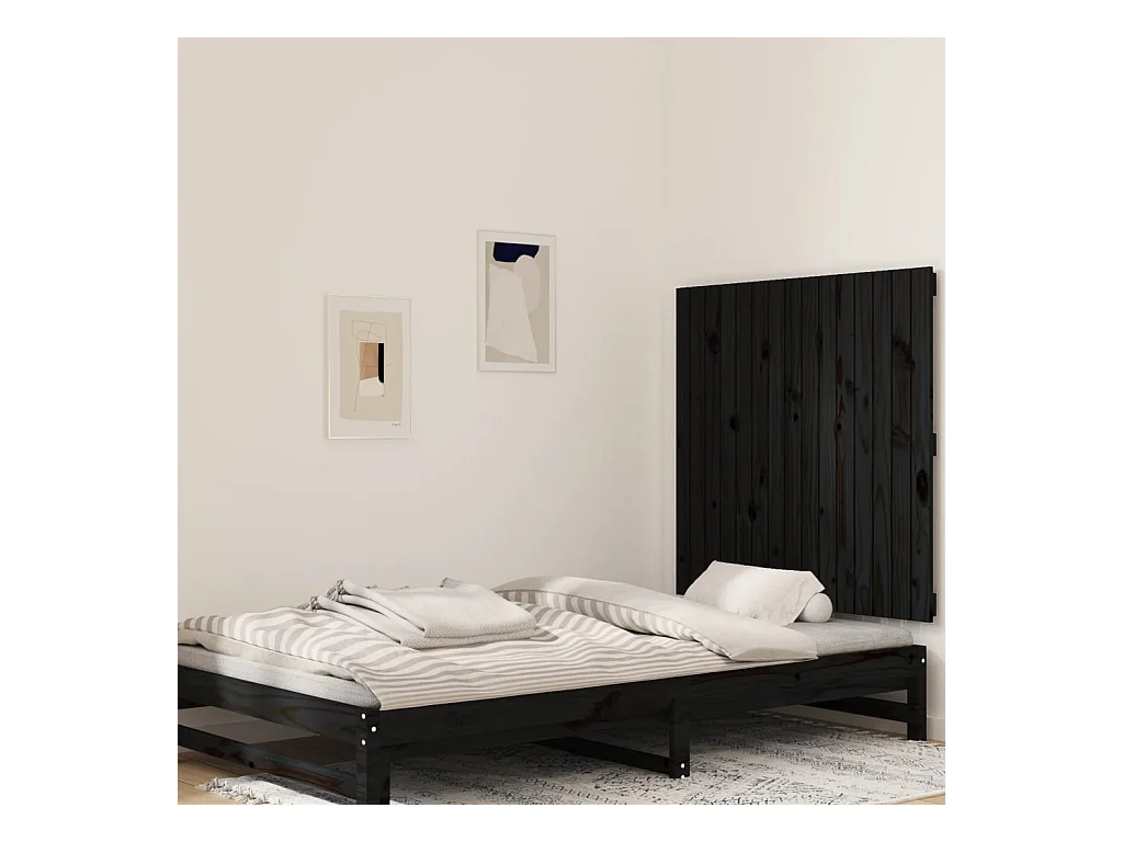 Cabecero de cama de pared madera maciza pino negro 82,5x3x90 cm ES35611
