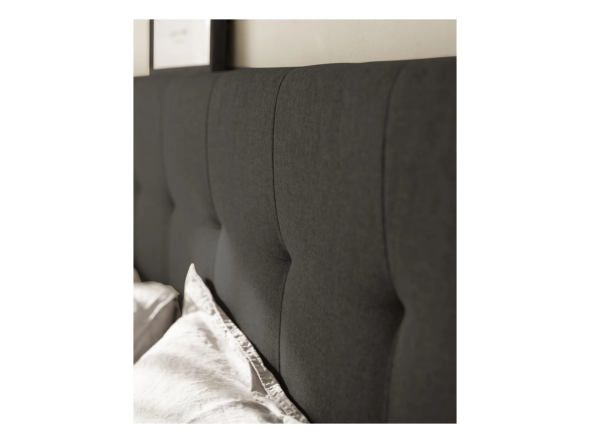 Cabecero de cama tapizado de poliester con botones en color gris de 180x80cm - ROC - DECOWOOD