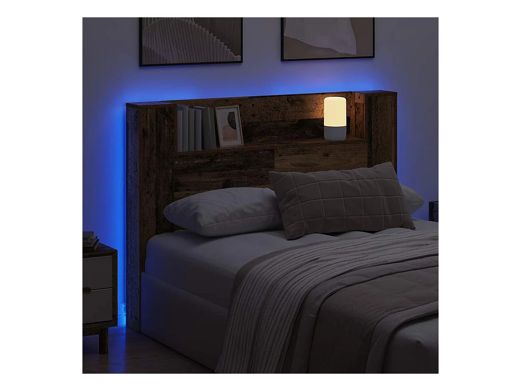 Cabecero de armario con LED madera vieja 140x17x102 cm