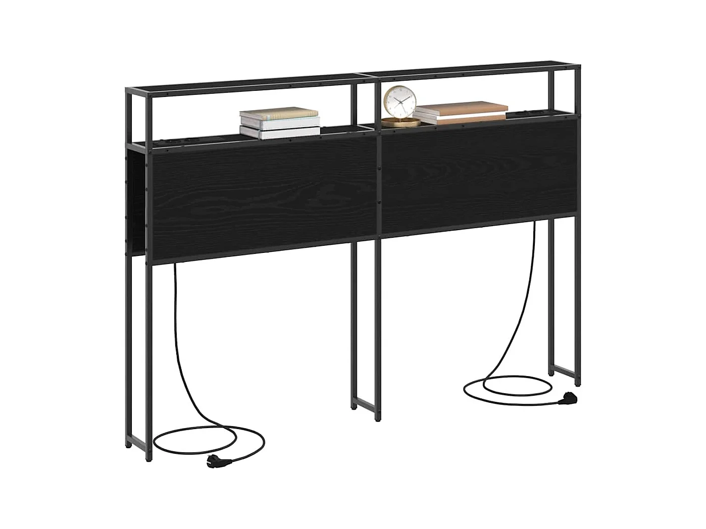 Cabecero con almacenaje y estación de carga Roble Negro 90 cm