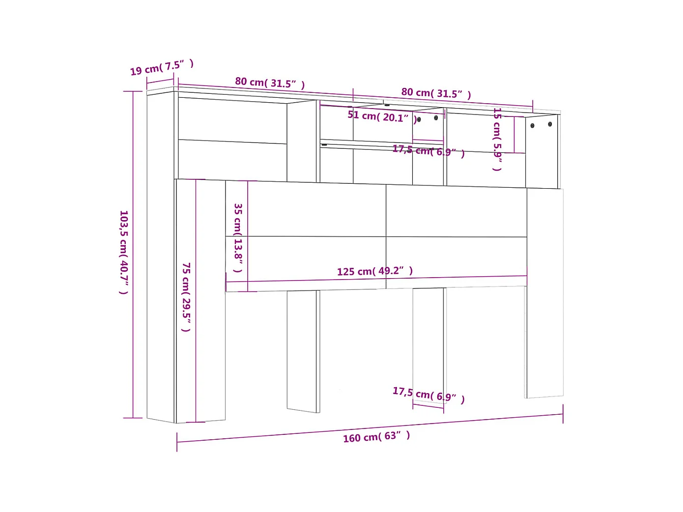 Cabecero de cama de roble ahumado 160x19x103,5 cm