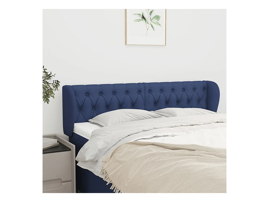 Cabecero con orejas de tela azul 163x23x118/128 cm ES72733