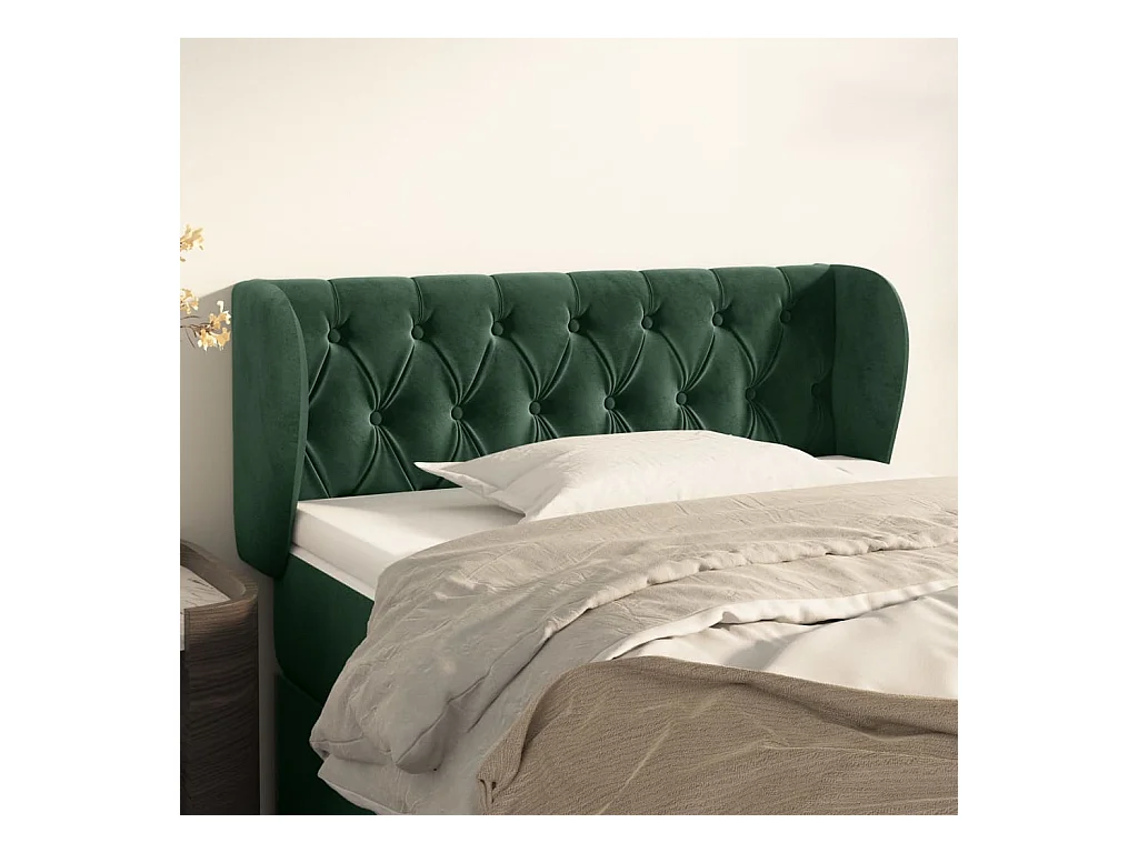 Cabecero con orejas de terciopelo verde oscuro 93x23x118/128 cm ES91163