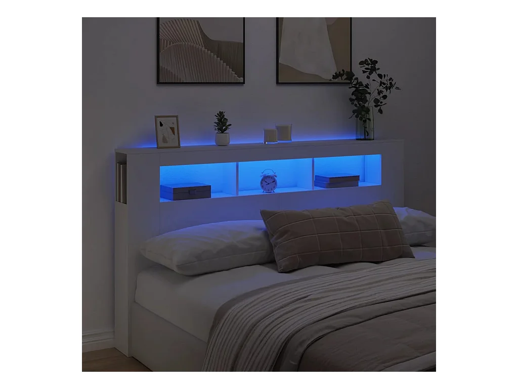 Cabecero LED blanco 180x18,5x103,5 cm madera de ingeniería
