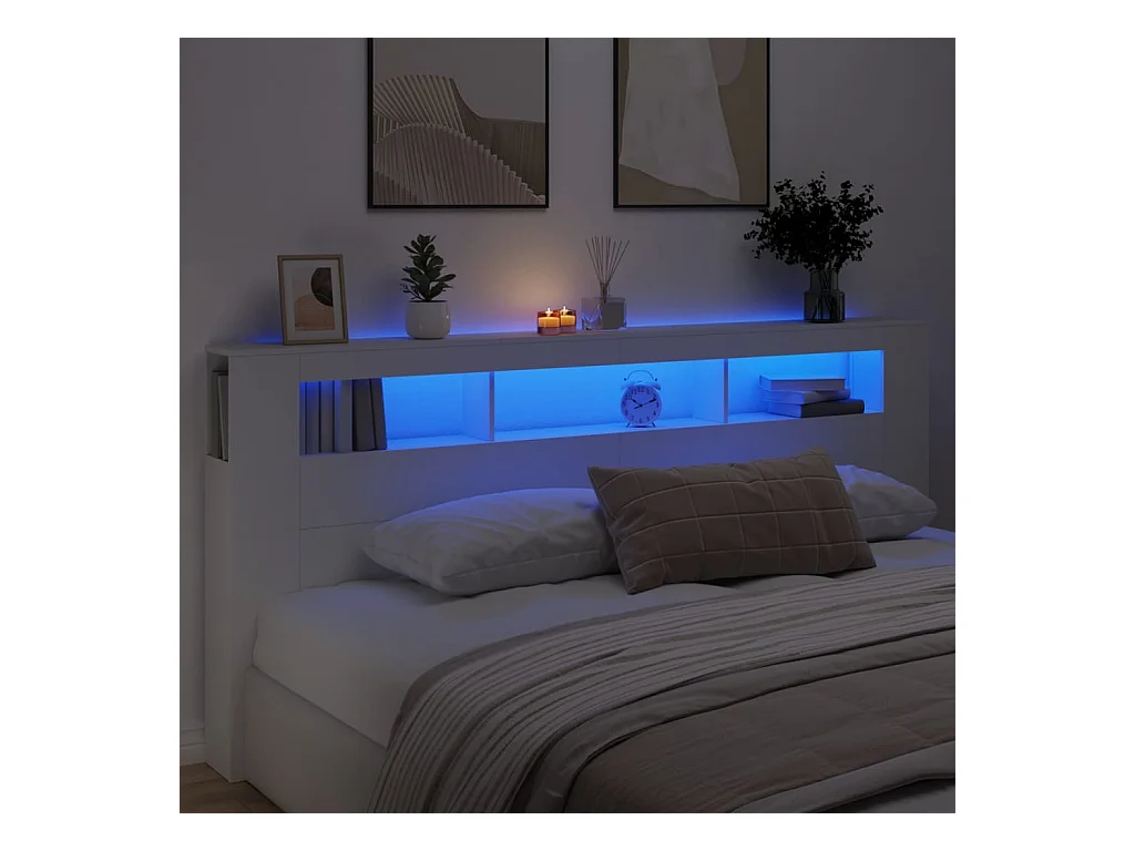 Cabecero LED blanco 180x18,5x103,5 cm madera de ingeniería