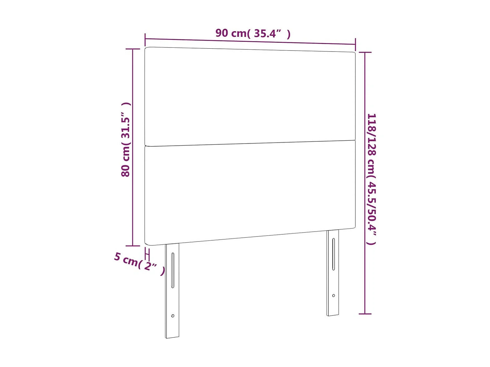 Cabecero LED color topo 90x5x118/128 cm Tela