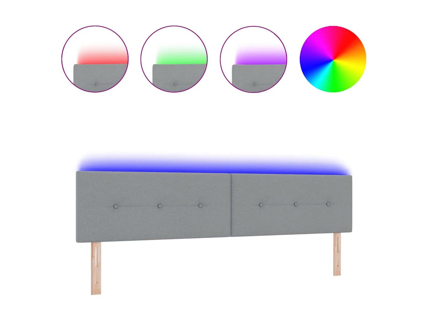 Cabecero LED con luces de tiras LED Gris claro 200 cm tela