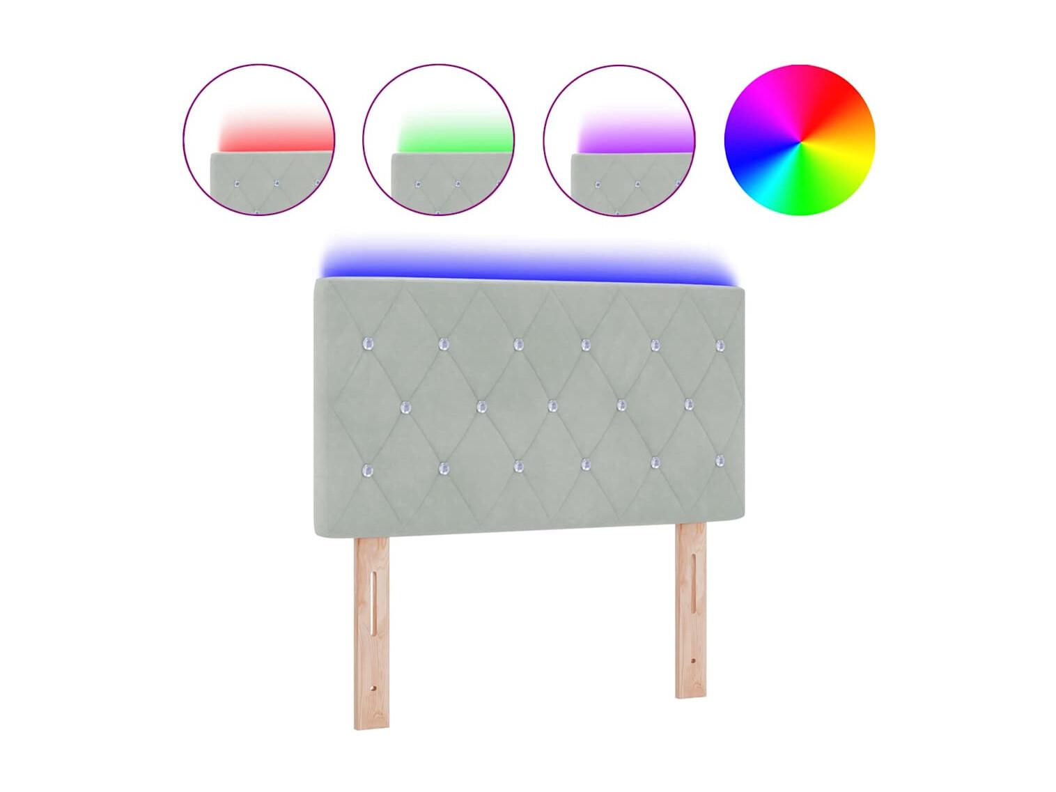 Cabecero LED Argyle con cabecera Gris claro 100 cm Terciopelo