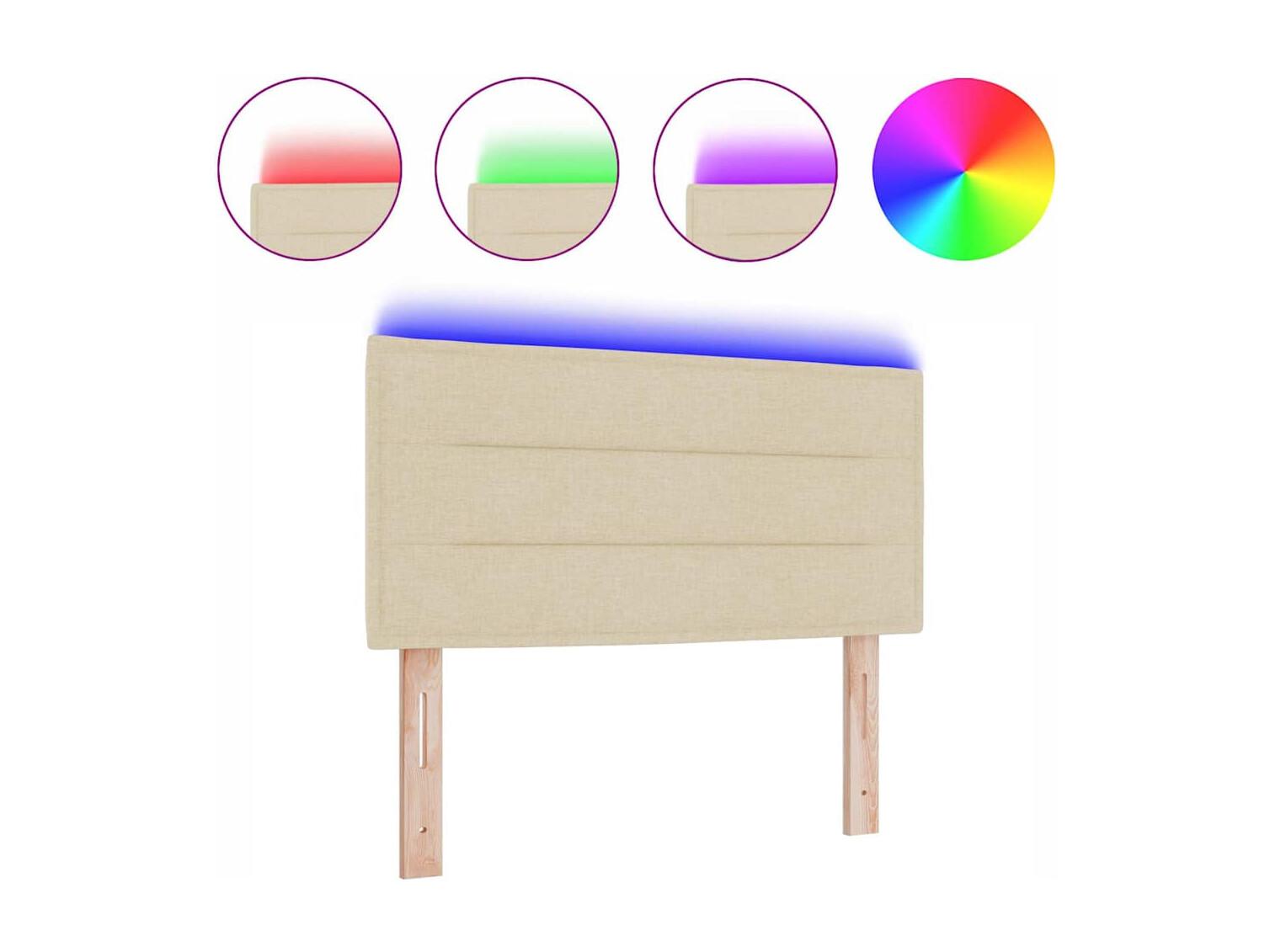 Cabecero LED con luces de tiras LED Manual Crema 100 cm tela