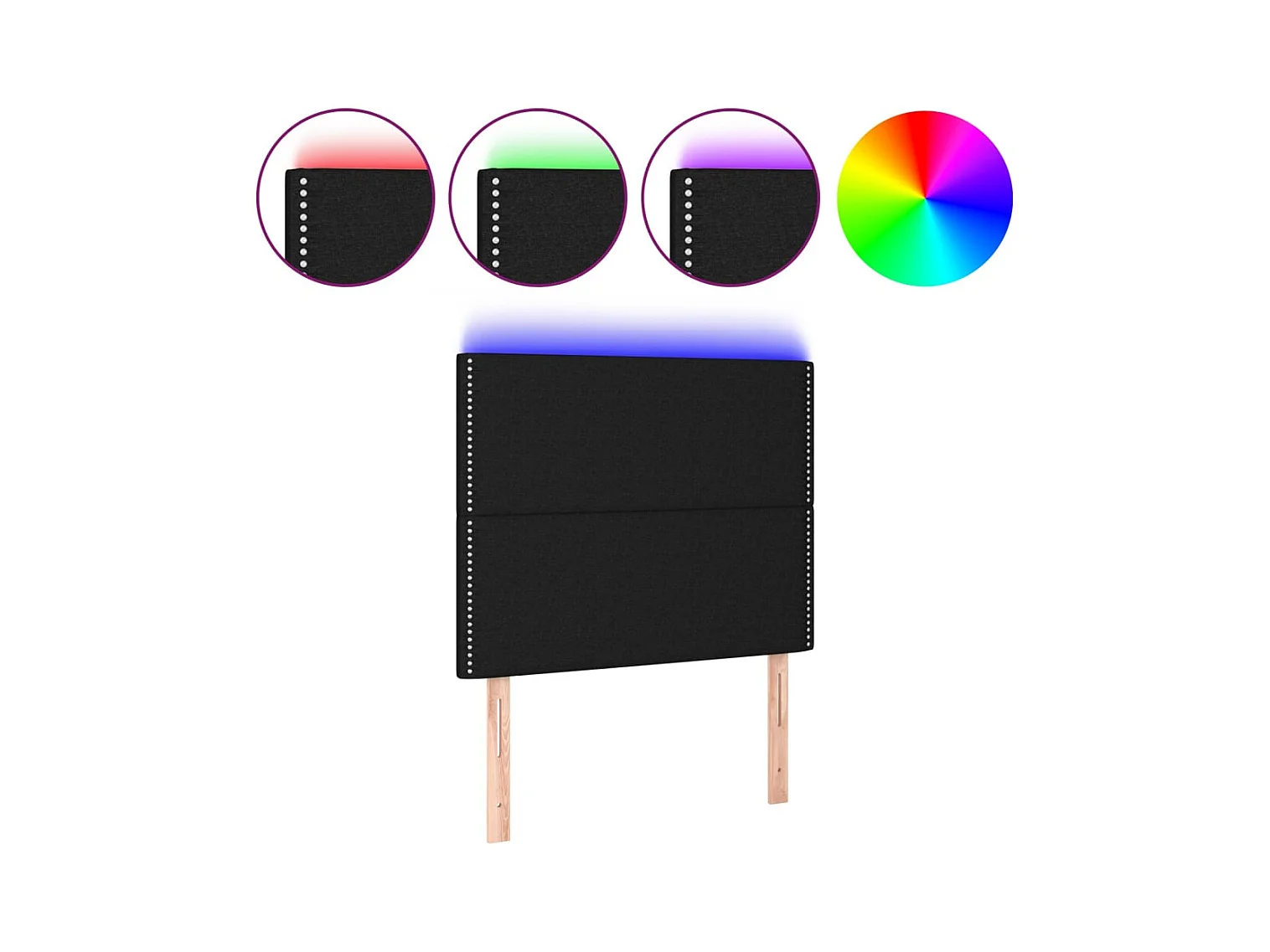 Cabecero LED Negro 90x5x118/128 cm Tela