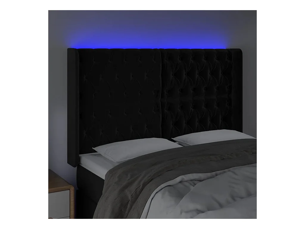 Cabecero LED Terciopelo Negro 163x16x118/128 cm