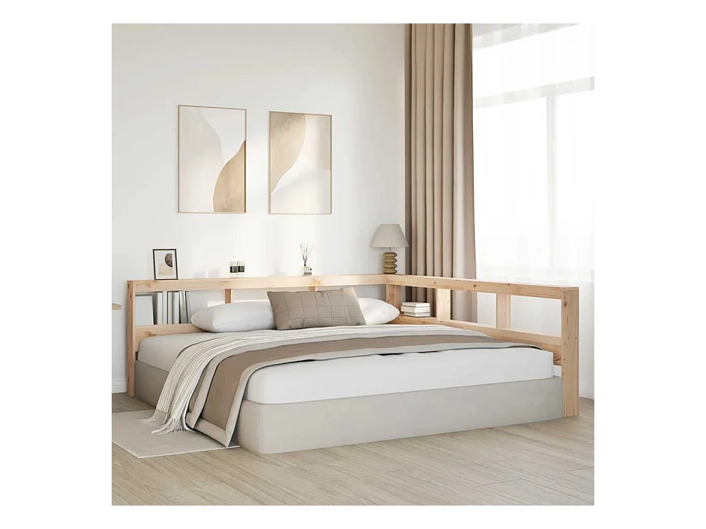 Cabecero librería en forma de L madera maciza de pino 200 cm