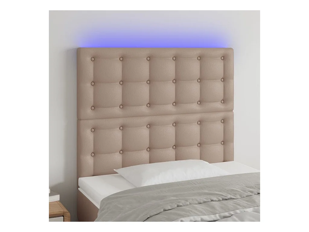 Cabecero luces LED cuero sintético capuchino 100x5x118/128cm ES50676