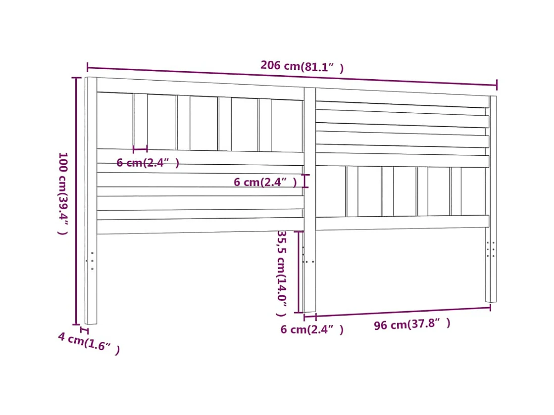 Cabecero Marrón Miel 206x4x100 cm Madera Maciza de Pino