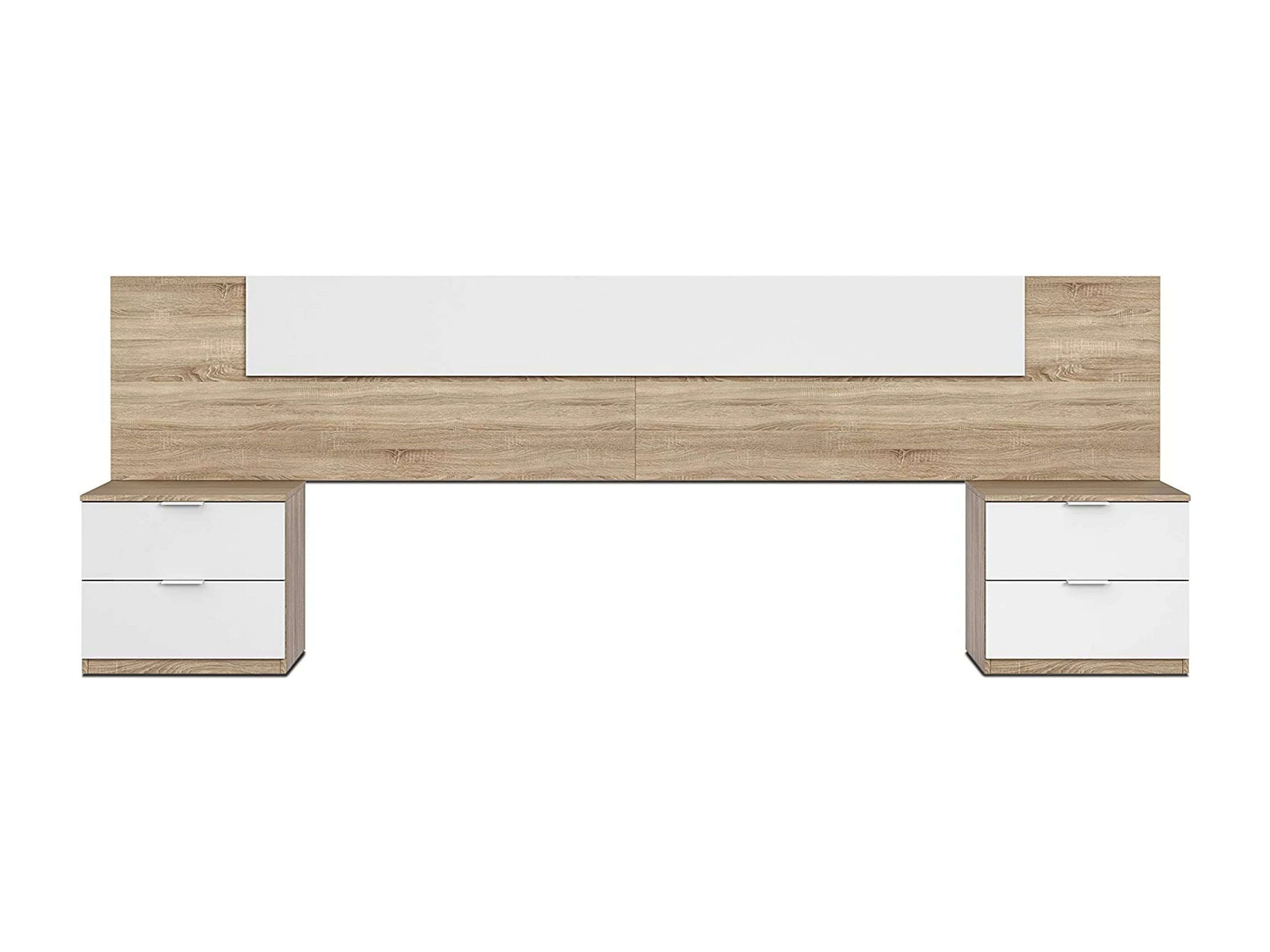 Cabecero Matrimonio con 2 mesitas Blanco y Roble, mesillas incl. 247x95x38 cm