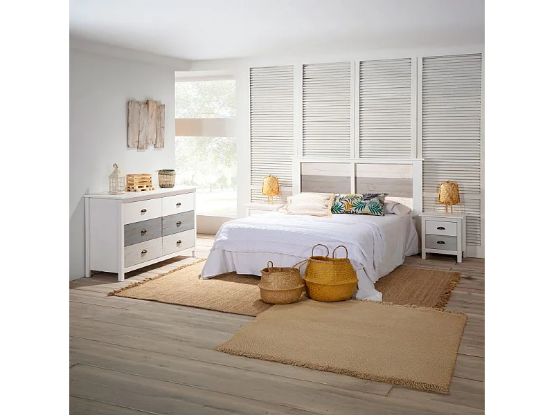 Conjunto de dormitorio Tekkan cabezal + 2 mesitas blanco Artik/cemento