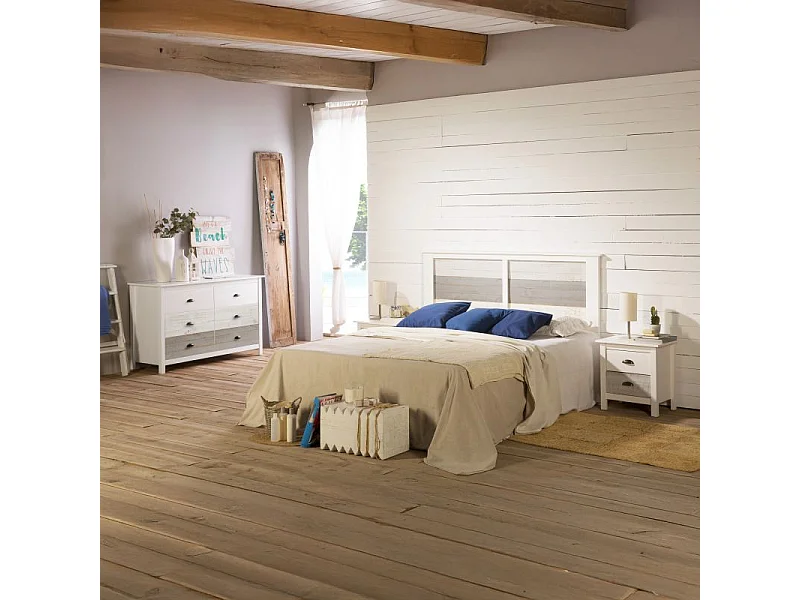 Conjunto de dormitorio Luca cabezal + 1 mesita de noche natural/blanco artik
