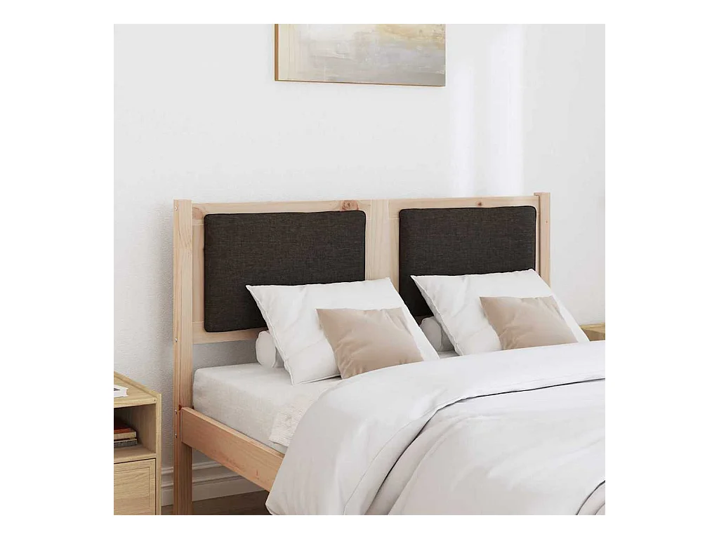 Cabecero tapizado Marrón 135 cm Madera de Pino Sólido y Tela