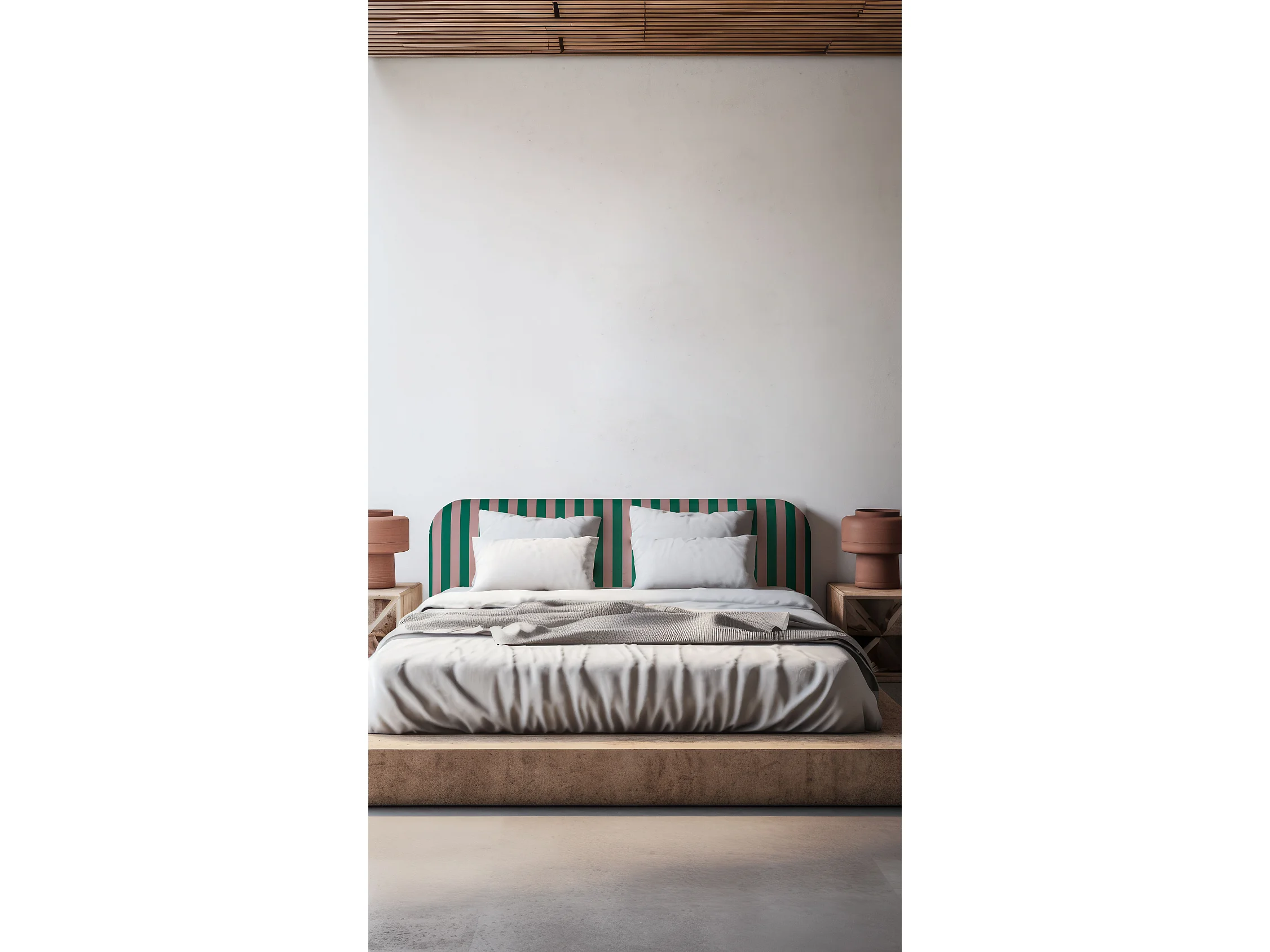 Cabecero tapizado terciopelo a rayas verdes y rosas 190x97cm