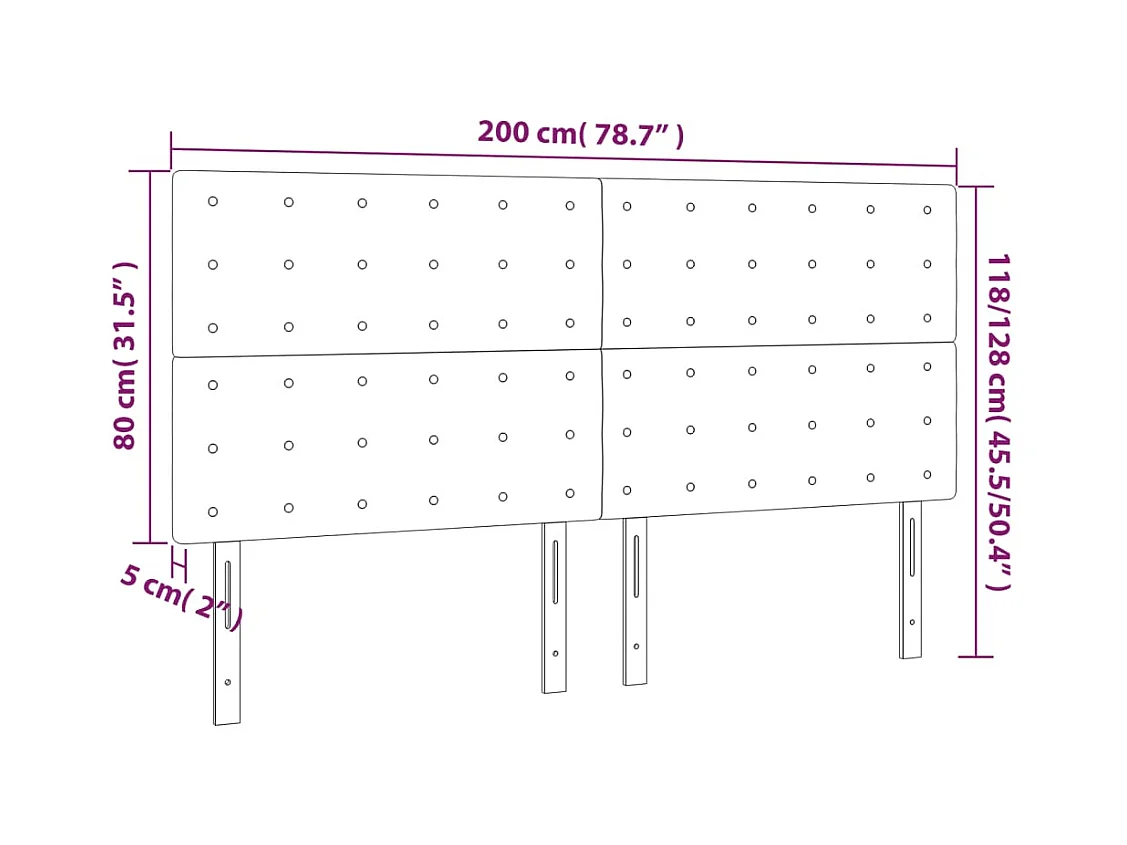 Cabeceros 4 piezas Rosa 100x7x78/88 cm Terciopelo