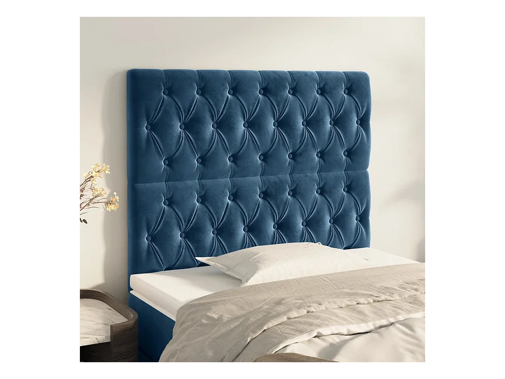 Mueble cabecero | Cabecero | Cabezal de cama Montaje en la pared Azul oscuro 90 cm Terciopelo