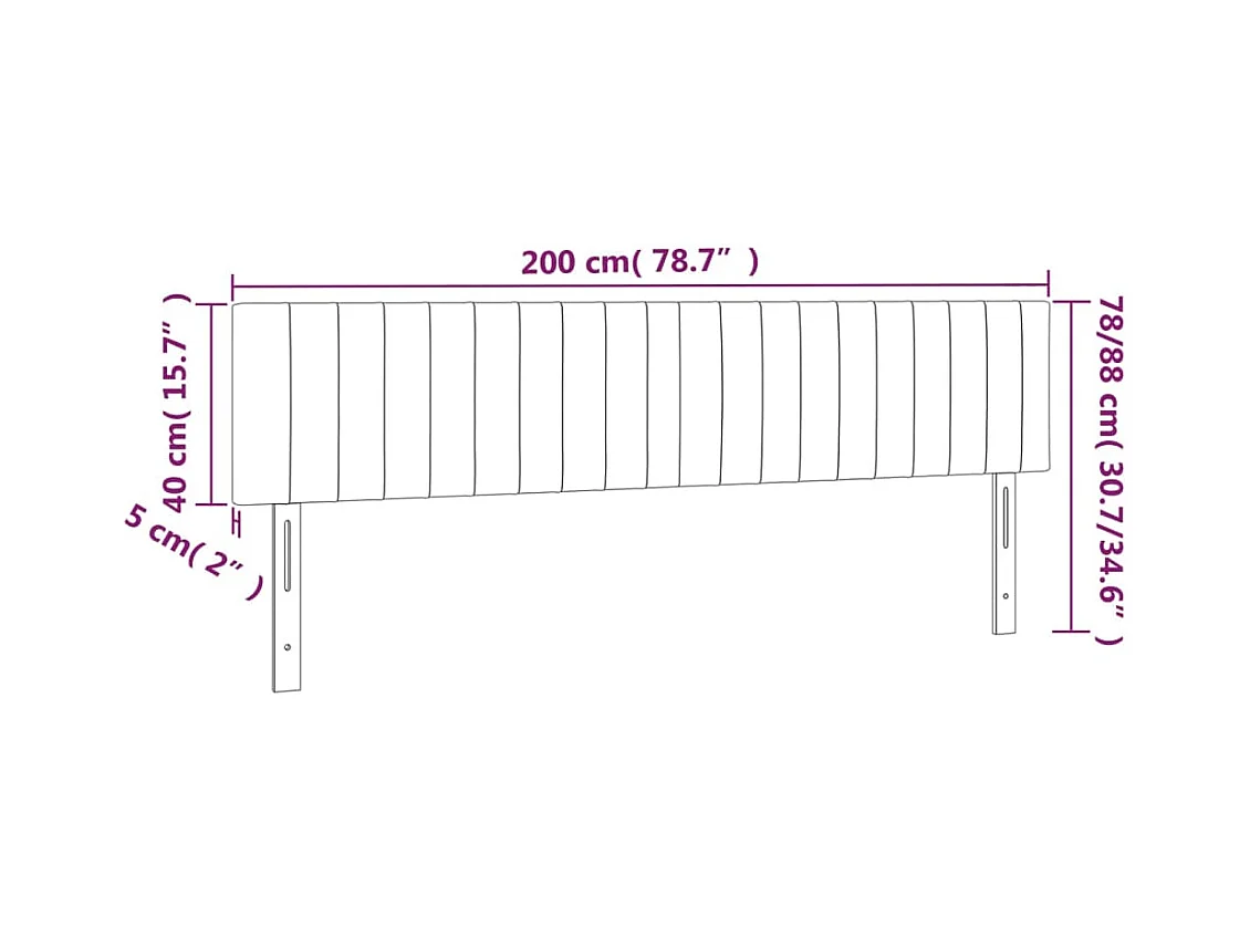 Cabecero | Cabezal de Cama | Mueble cabecero con LED de terciopelo negro 200x5x78/88 cm