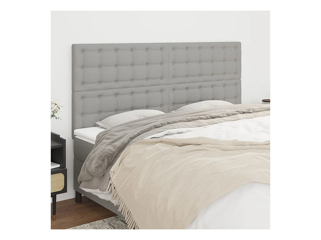 Cabeceros | Cabezal de cama | Mueble de cabecero 4 unidades de tela gris claro 100x5x78/88 cm