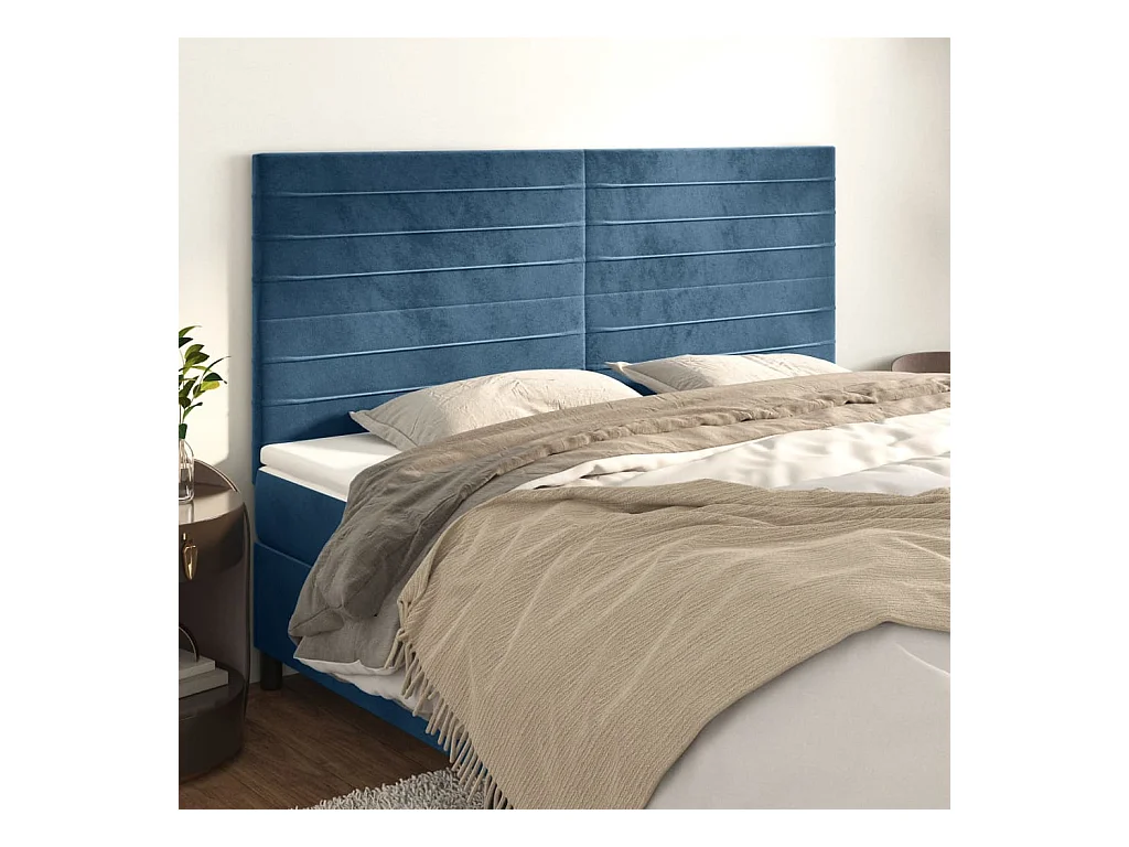 Cabeceros | Cabezal de cama | Mueble de cabecero 4 unidades de terciopelo azul oscuro 100x5x78/88 cm