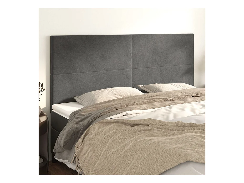 Cabeceros | Cabezal de cama | Mueble de cabecero 4 unidades de terciopelo gris oscuro 80x5x78/88 cm