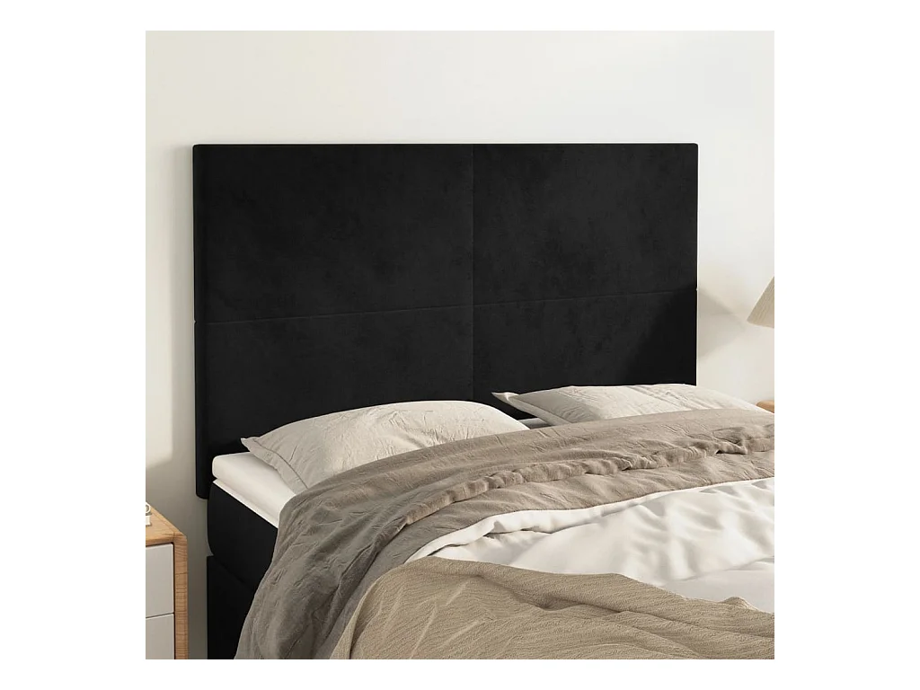 Cabeceros | Cabezal de cama | Mueble de cabecero 4 unidades terciopelo negro 72x7x78/88 cm