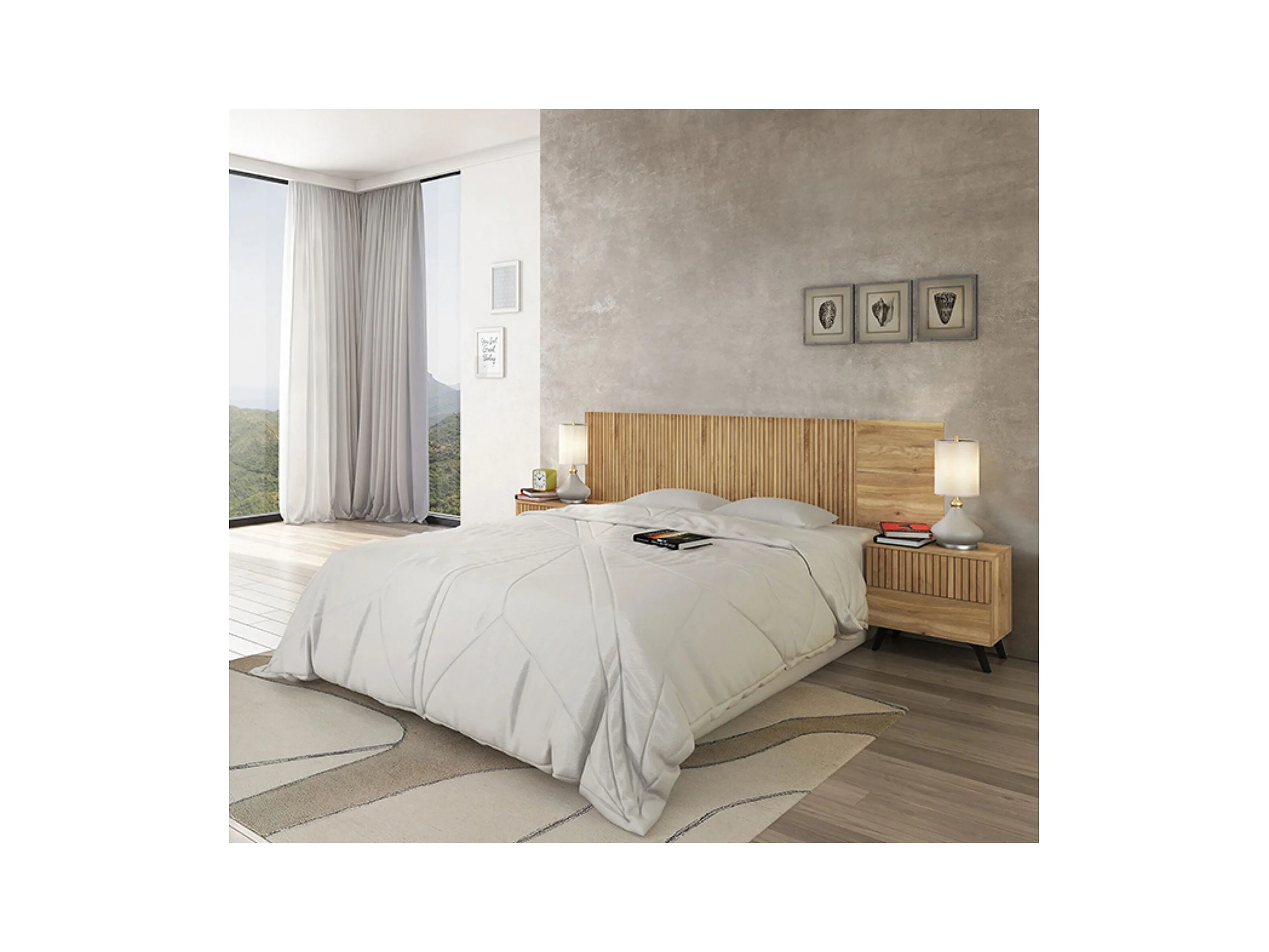 Meyvaser Conjunto Pack Cabecero y 2 Mesitas de Noche,Mesilla de noche 3 Cajones Color Beige, Medidas:160x45x1,6 cm (LargoxAltoxProfundo)