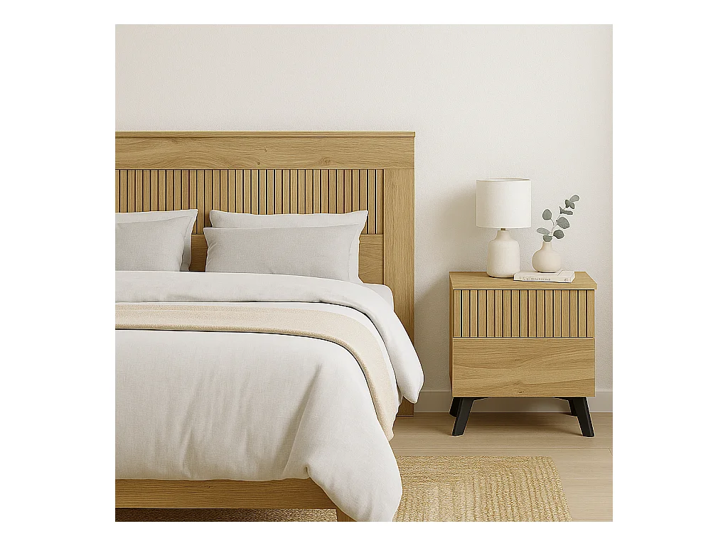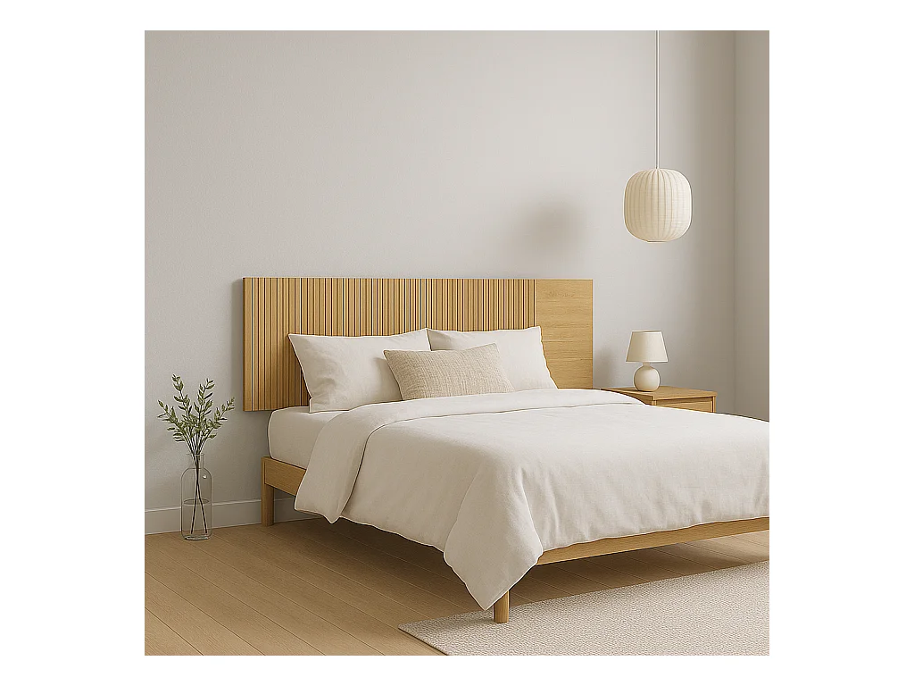 Cabezal + Dos Mesitas de Noche, Cabecero y Mesitas, Acabado en Mauvella - Rayas, Medidas: 210 cm (An) x 55 cm (Al) x 35 cm (Fon) – Meyvaser.