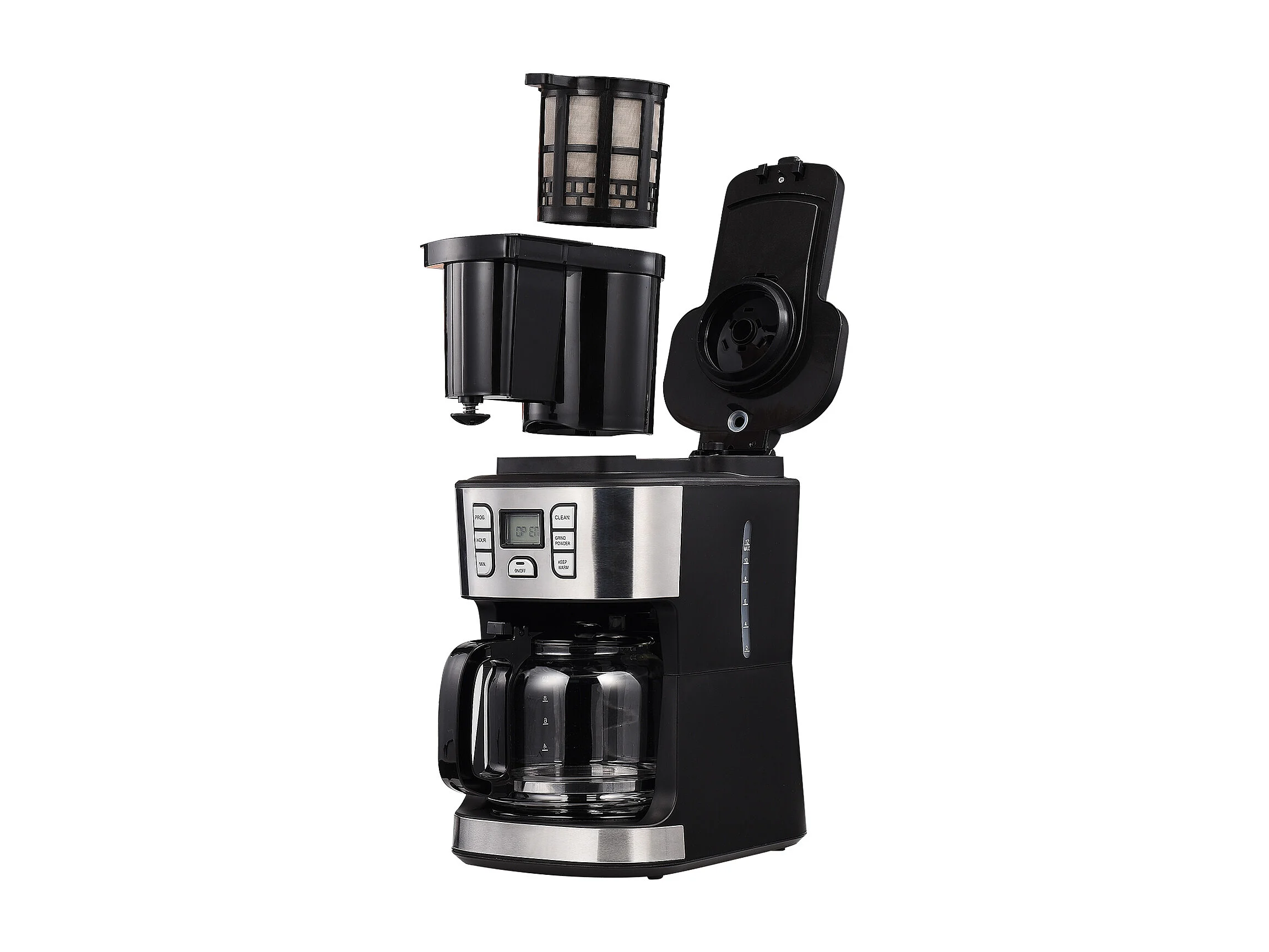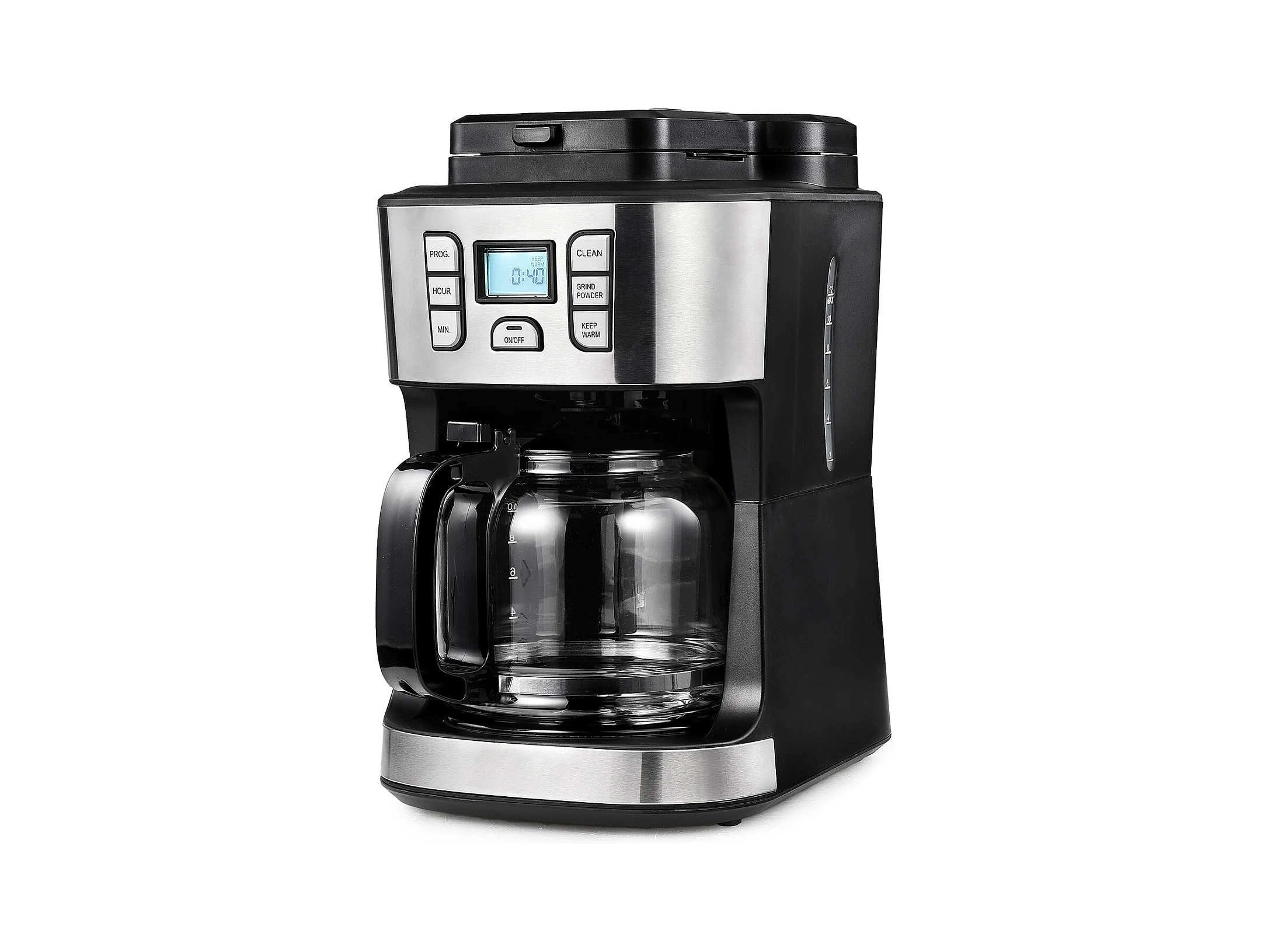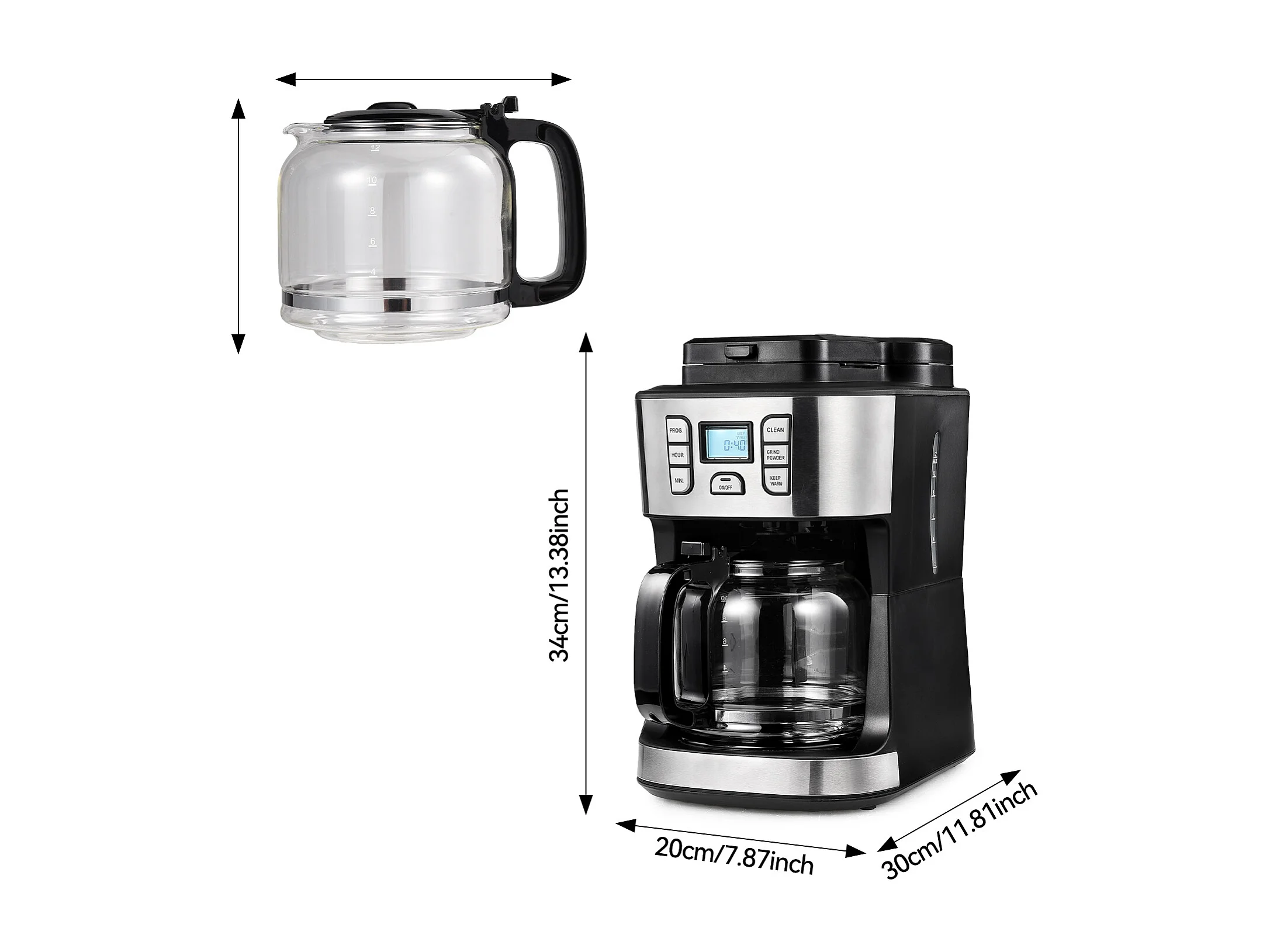 Cafetera de filtro barista con molinillo y jarra aislada | Cafetera aislada para 10 tazas grandes de café | Para café en grano y café molido, negro/gris
