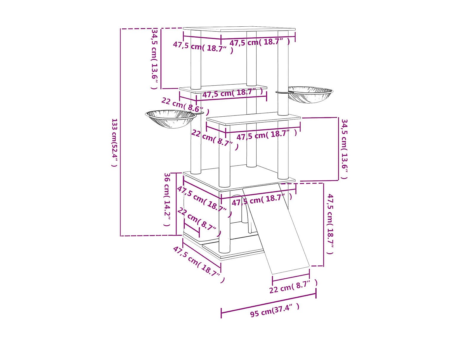 Eirisse Rascador para gatos con postes de sisal color crema 107,5 cm