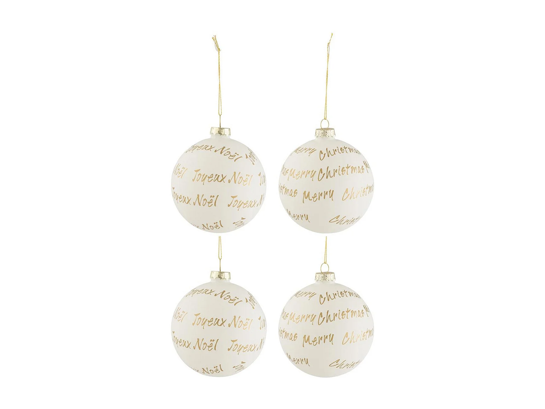 Caja de 4 bolas de Navidad de vidrio blanco de 10x10x10 cm