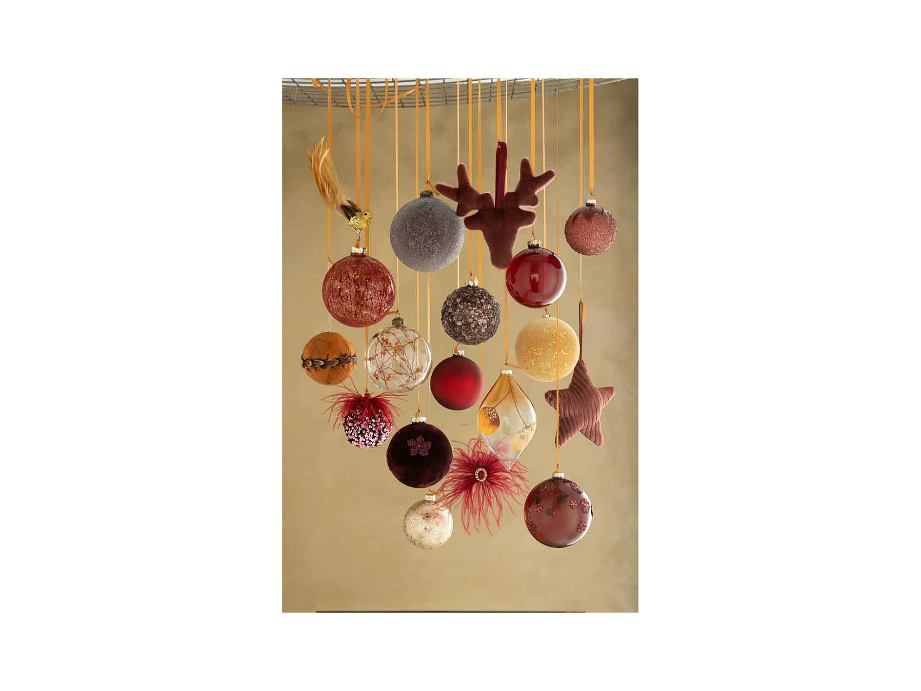 Caja de 4 bolas de Navidad de vidrio marrón de 10x10x10 cm
