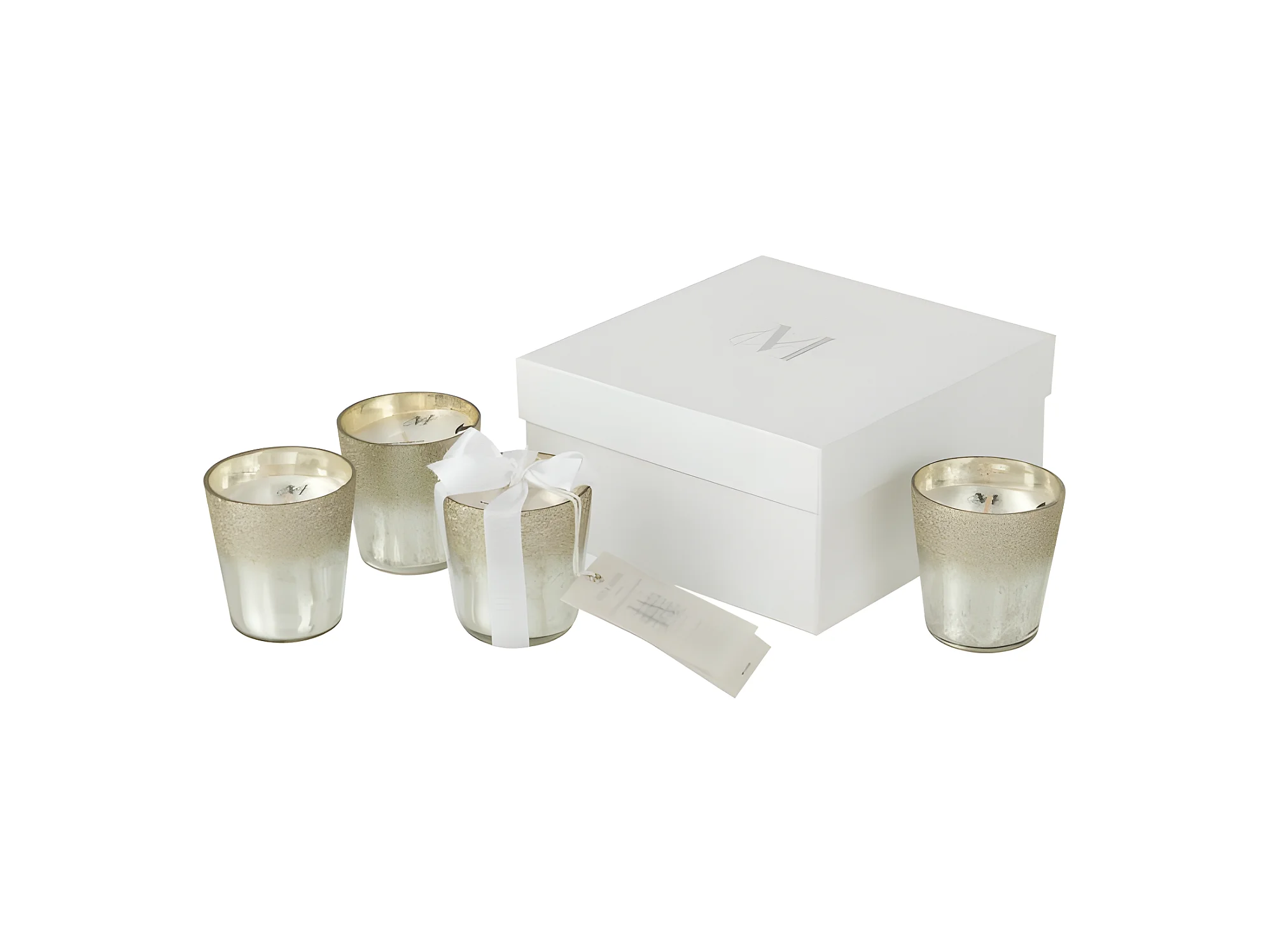 Caja de 4 velas perfumadas de vidrio plateado 7x7x7 cm
