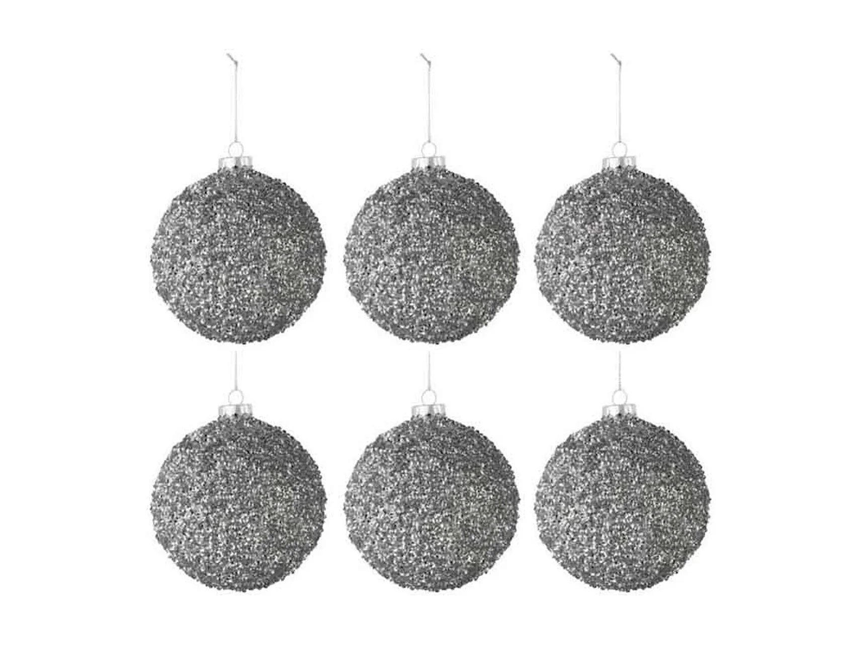 Caja de 6 bolas de Navidad de vidrio gris 8x8x8 cm