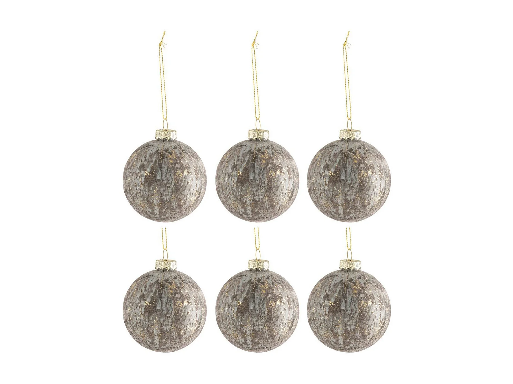 Caja de 6 bolas de Navidad de vidrio gris 8x8x8 cm
