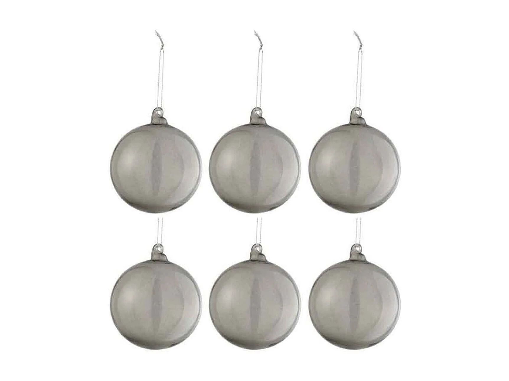 Caja de 6 bolas de Navidad de vidrio gris de 8x8x8 cm