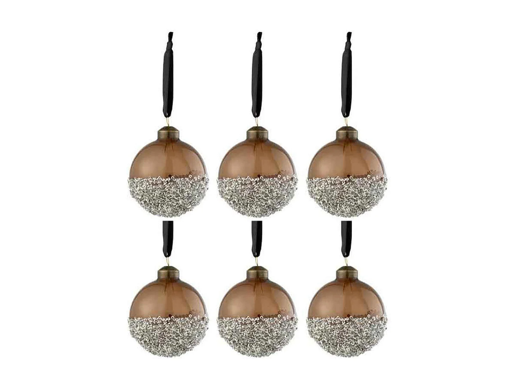 Caja de 6 bolas de Navidad de vidrio marrón de 8x8x8 cm