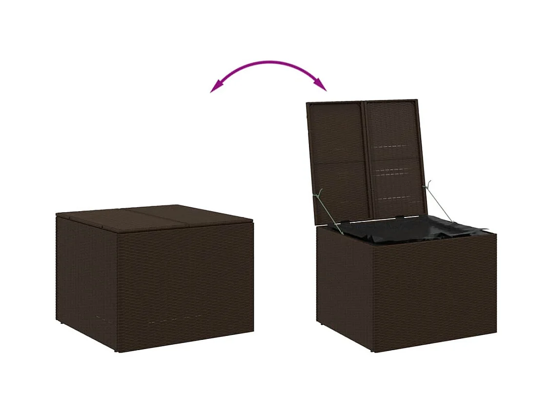 Baúl de cojines para jardín de ratán PE marrón 100x97,5x104 cm ES312039