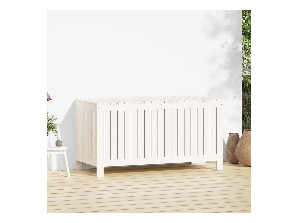 Hara Caja de almacenaje jardín madera de pino blanco 121x55x64 cm