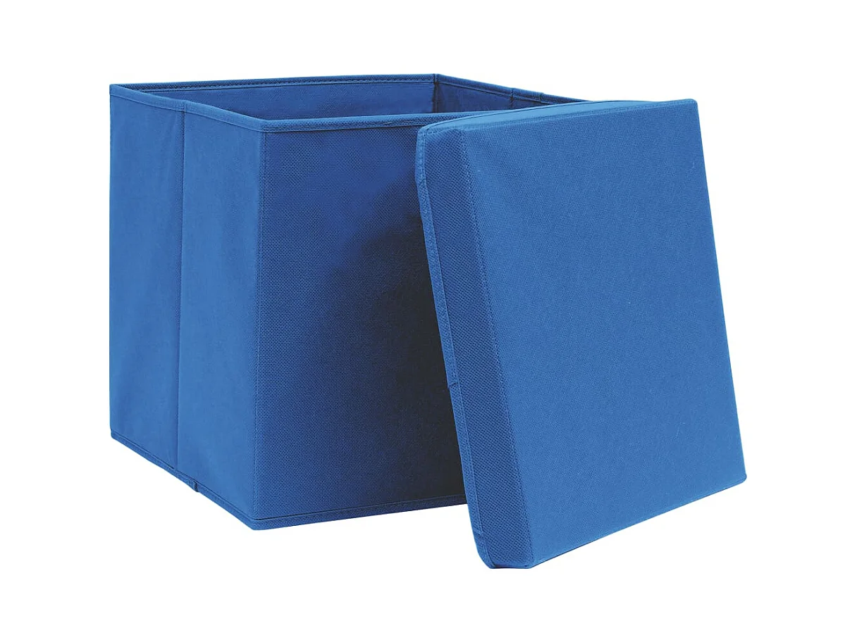 Cajas de almacenaje con tapa 4 uds Azul 32x32x32 cm Tela