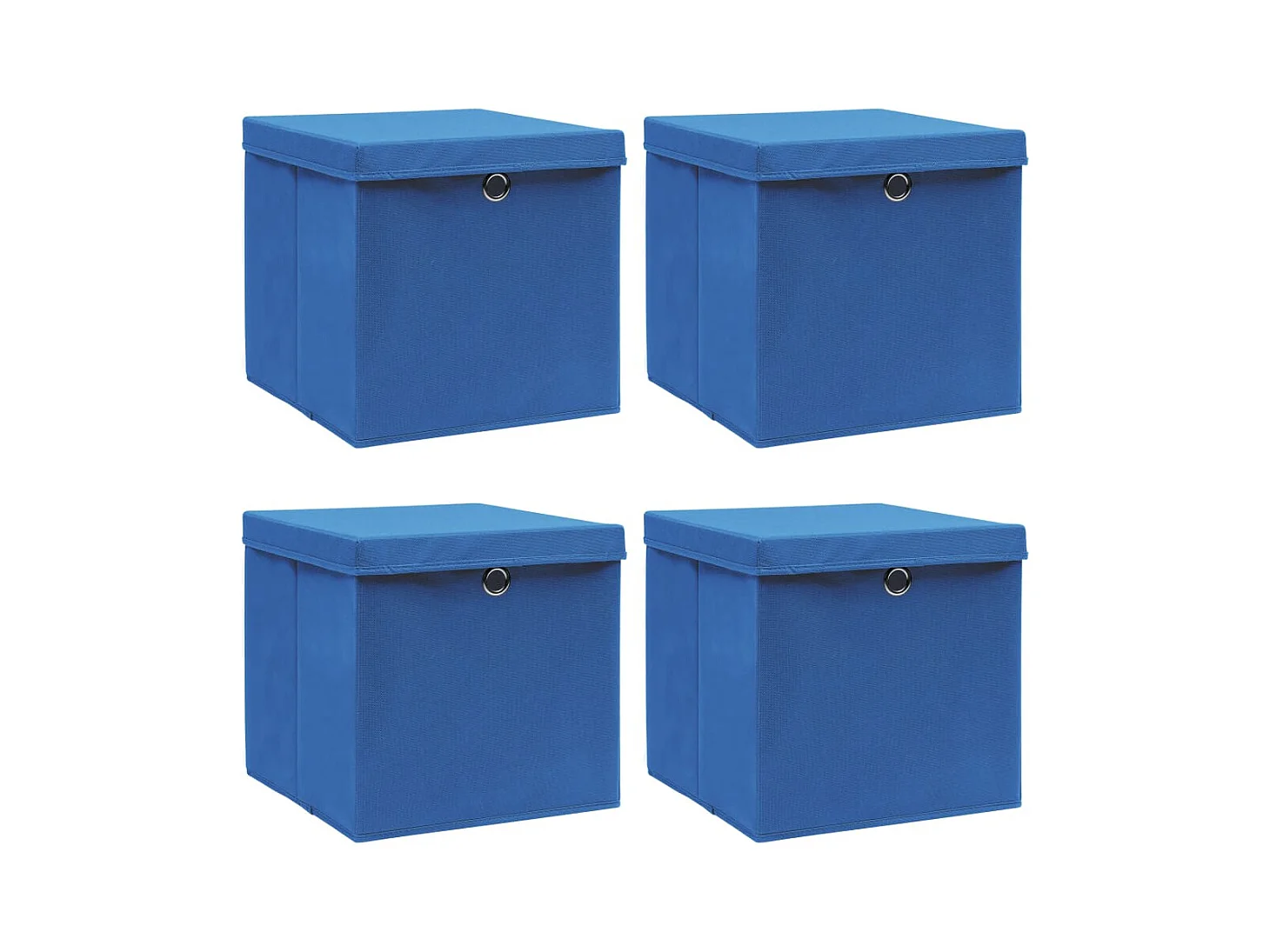 Cajas de almacenaje y tapas 4 uds Azul 32x32x32 cm Tela