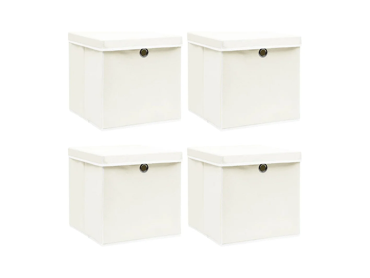 Cajas de almacenamiento con tapa, 4 unidades, blancas, 32 x 32 x 32 cm, de tela